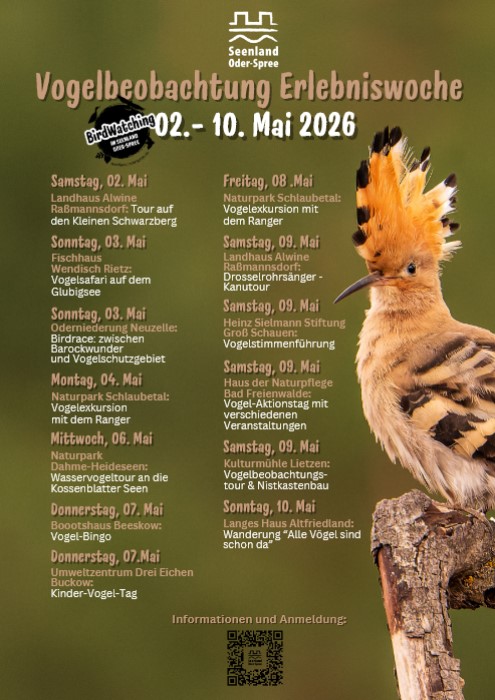 Mehr zu allen Touren im Seenland: 02. – 10.05.2026 Vogelbeobachtung-Erlebniswoche im Seenland Oder-Spree